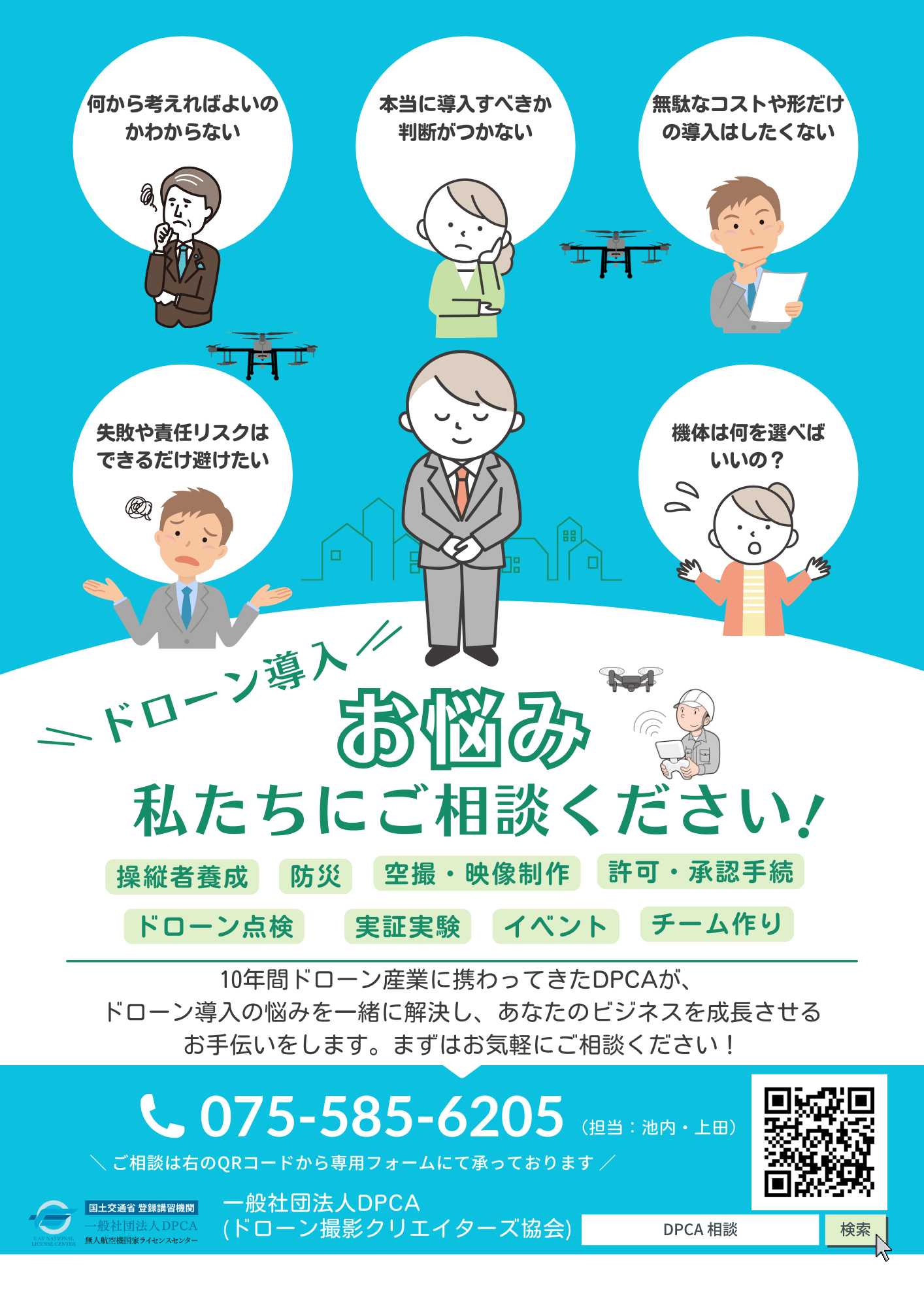 そこでDPCAでは、ドローン導入に“失敗しない”ために、【 無料相談窓口 】を開設しました。